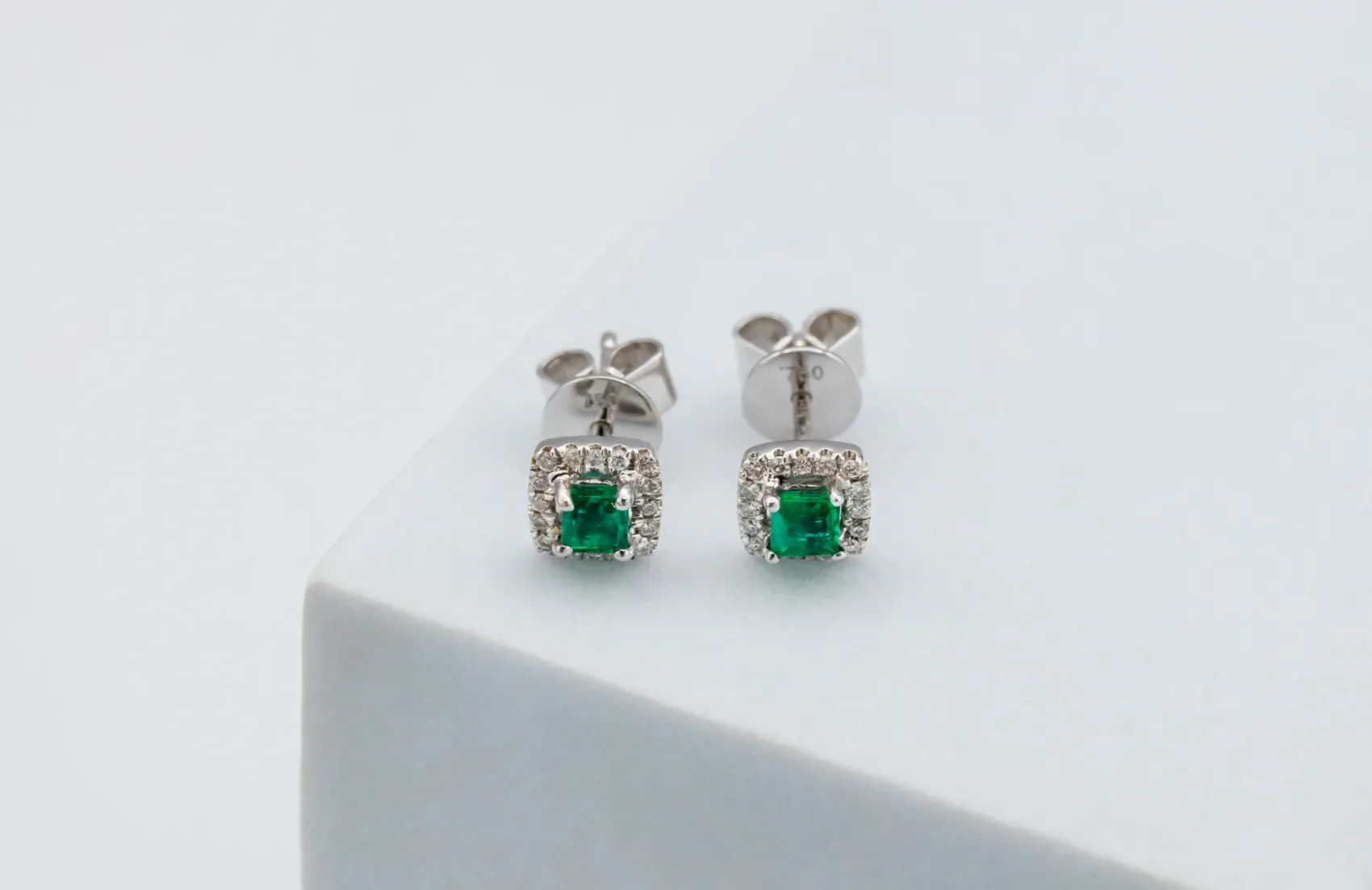 These exquisite 18ct white gold stud earrings feature a striking combination of emerald-cut natural emeralds and brilliant-cut natural diamonds, creating a perfect balance of colour, clarity, and sparkle. The vivid green of the emeralds is beautifully accentuated by the brilliance of the surrounding diamonds, resulting in a timeless and elegant design.