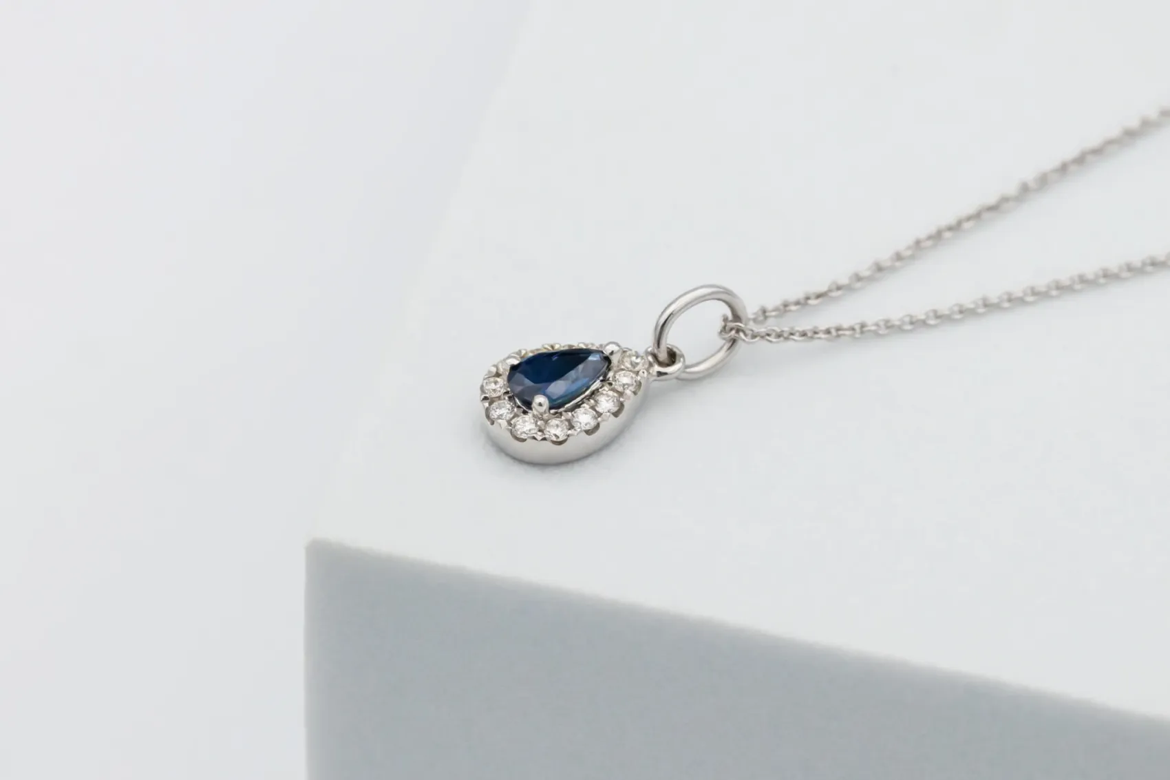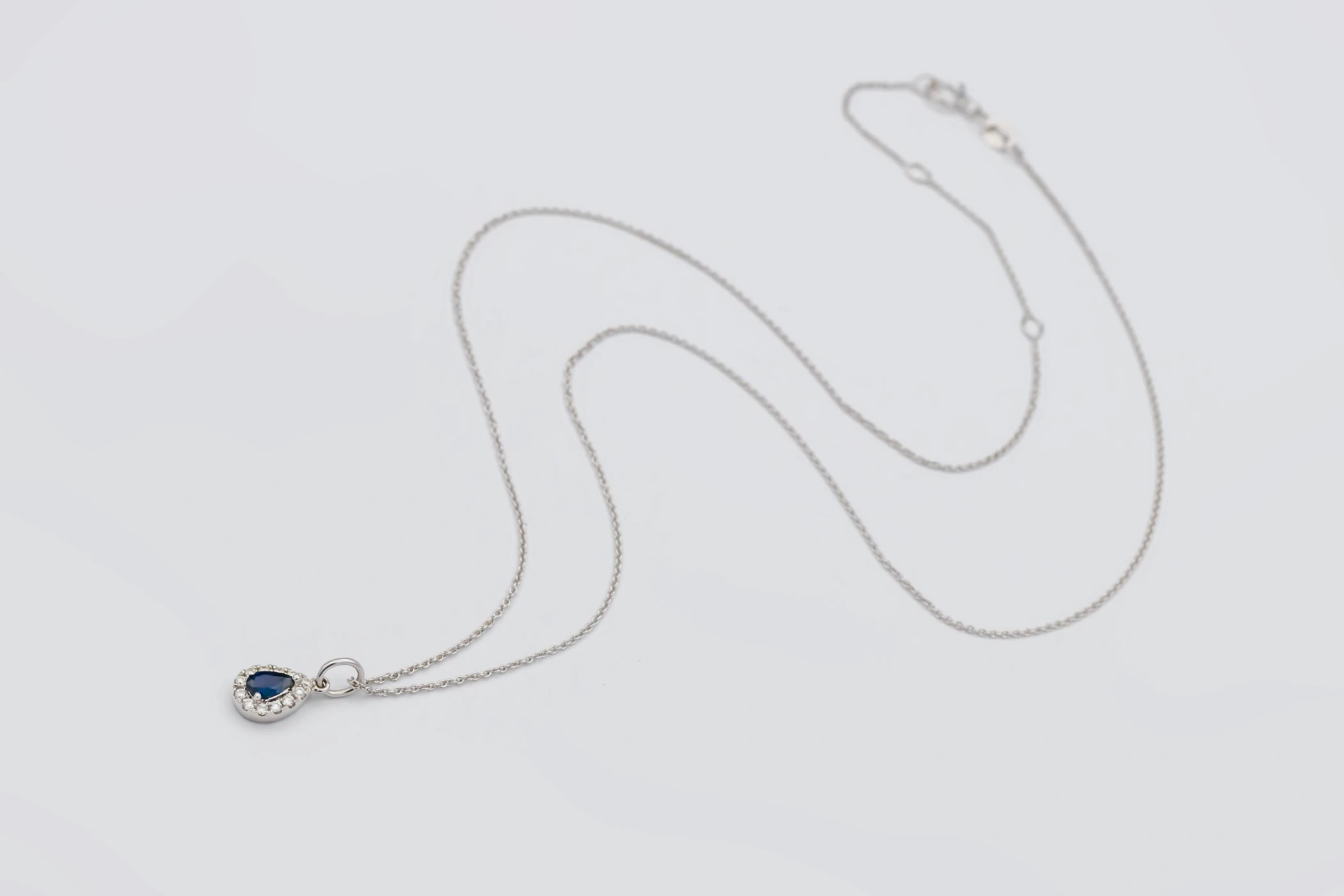 Suspended from a fine 18ct white gold chain, this pendant embodies refined craftsmanship and understated luxury, perfect for both everyday wear and special occasions. The harmonious pairing of sapphire and diamond creates a look that is effortlessly classic and enduringly stylish.