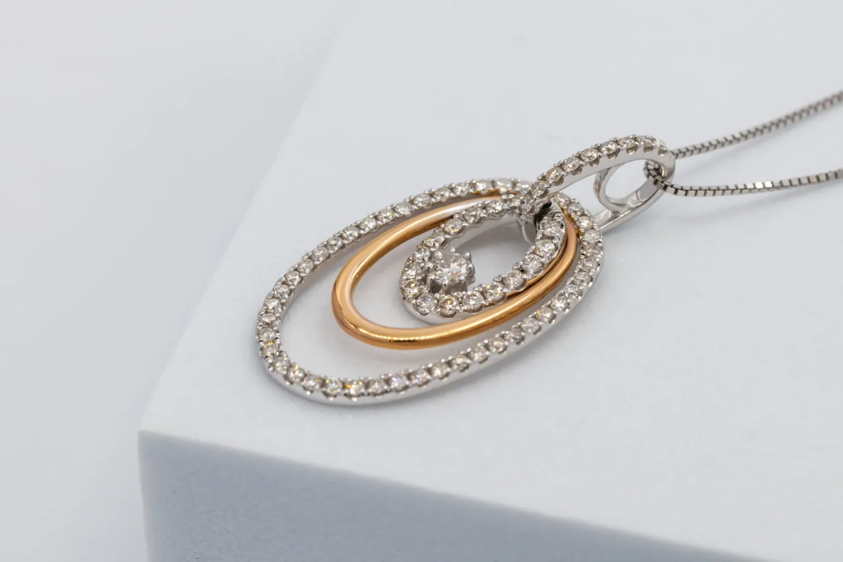 This refined 18ct white and yellow gold diamond necklace showcases understated elegance and timeless beauty. Set with 1.00 carat of brilliant-cut diamonds, graded G colour and VS clarity, the necklace sparkles with captivating brilliance while maintaining a graceful, classic appearance. The contrasting tones of white and yellow gold enhance the depth and radiance of the diamonds, creating a sophisticated two-tone design that complements any style.