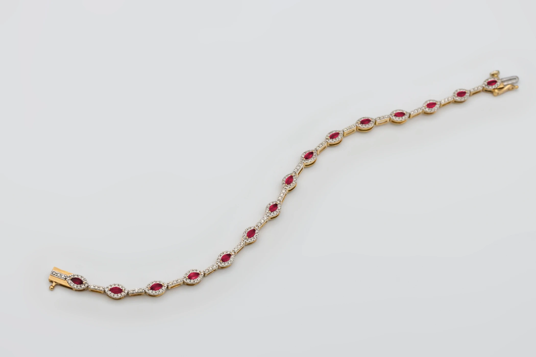 9ct Yellow Gold Ruby & Diamond Bracelet – Marquise Ruby & 1.40ct Natural Brilliant Cut Diamonds