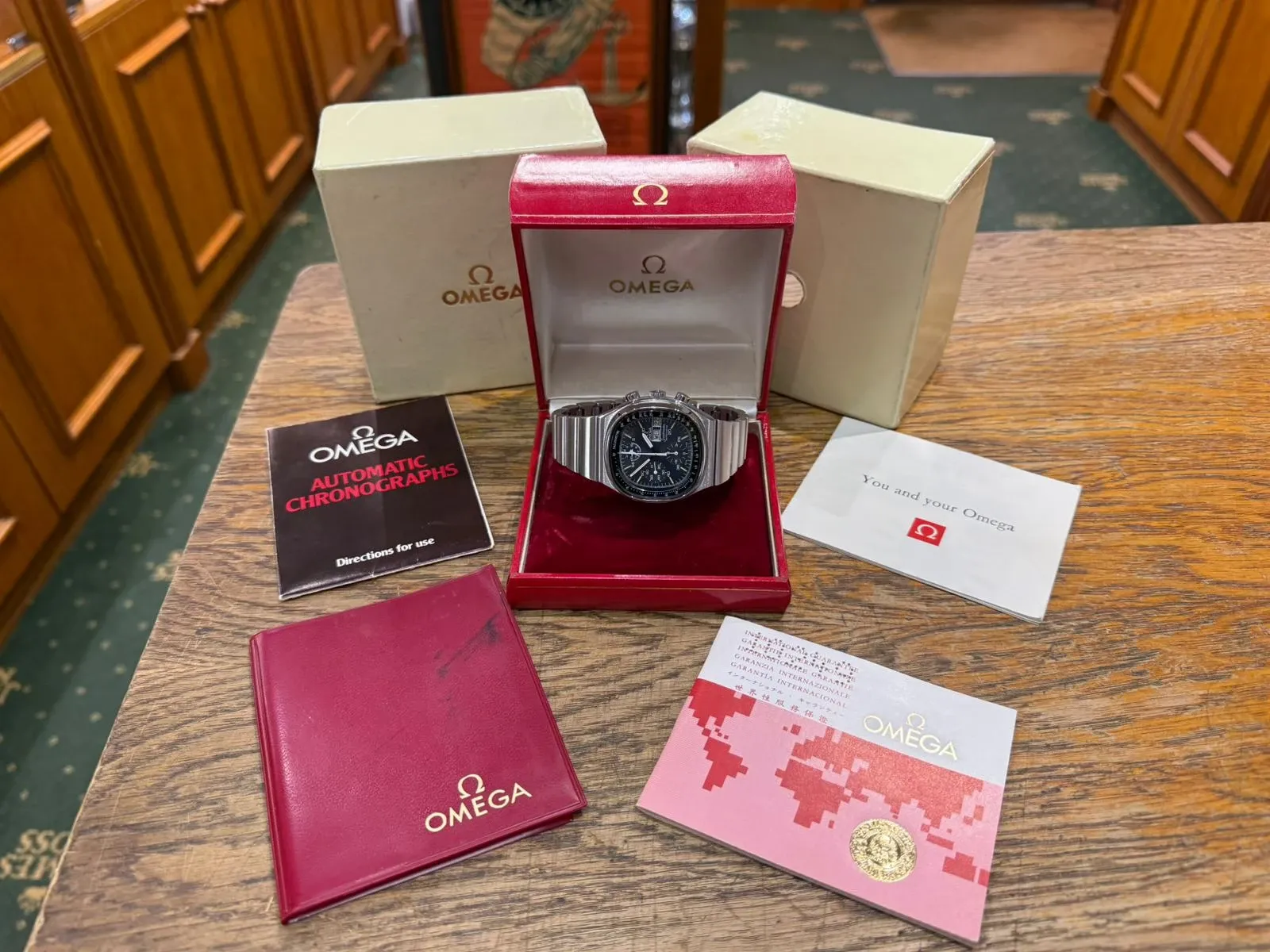 Presented in absolutely immaculate condition, this exceptional example comes as a complete collector’s set, including the original Omega box, booklets, blank papers, and wallet. Fully serviced and offered with a two-year guarantee, it stands as a superb addition to any vintage Omega collection.