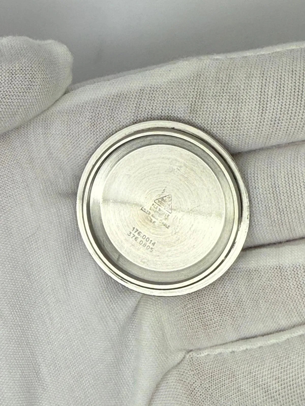 This remarkable Omega Speedmaster Automatic Day-Date “TV Screen”, reference 176.0014, is a rare and highly collectible vintage chronograph from the late 1970s. The distinctive 40mm stainless steel case takes its nickname from the unique television-shaped design, a bold departure from the traditional Speedmaster silhouette.