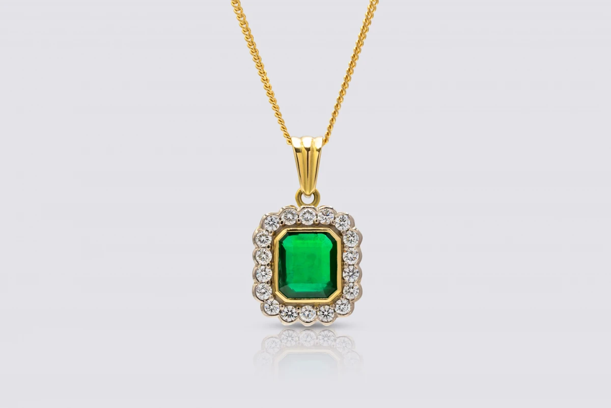 18ct Yellow Gold Emerald & Diamond Necklace 4.12ct & 1.08ct