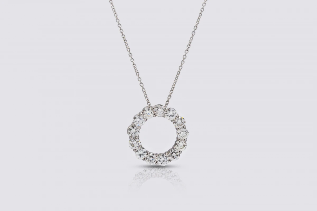 18ct White Gold Diamond Circle Pendant Necklace 0.87ct