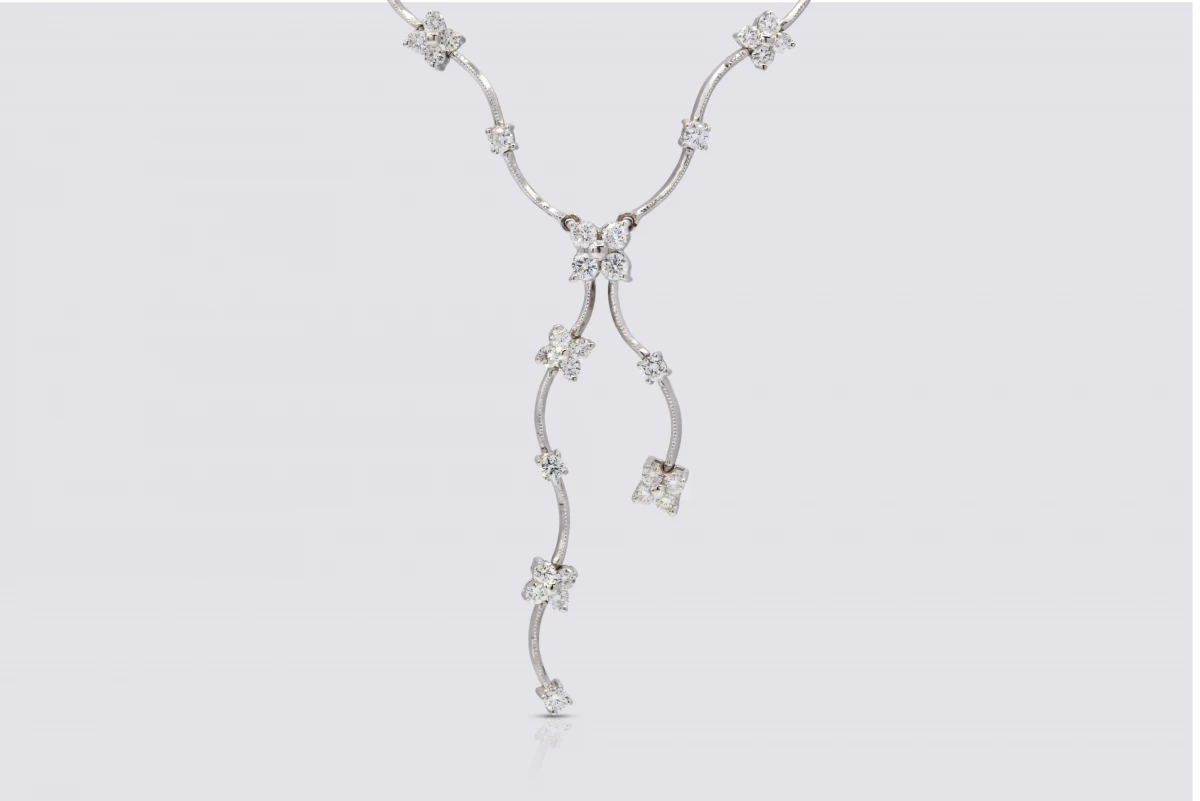 18ct White Gold Diamond Flower Patterned Necklace 1.80ct