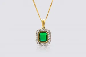 9ct Yellow Gold Emerald & Diamond Necklace – Oval Pendant