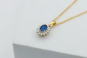 9ct Yellow Gold Sapphire & Diamond Necklace – Oval Pendant