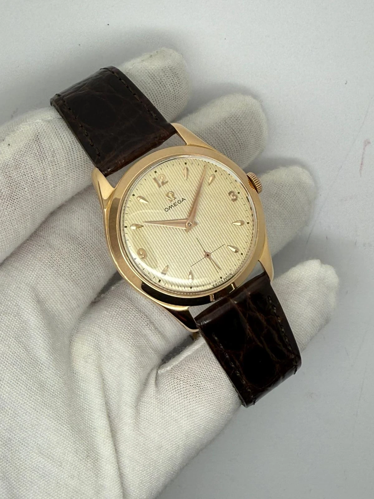 Omega 36mm 18ct Rose Gold Calibre 265 Striped Dial Reference 2619 – Vintage Box – 1950