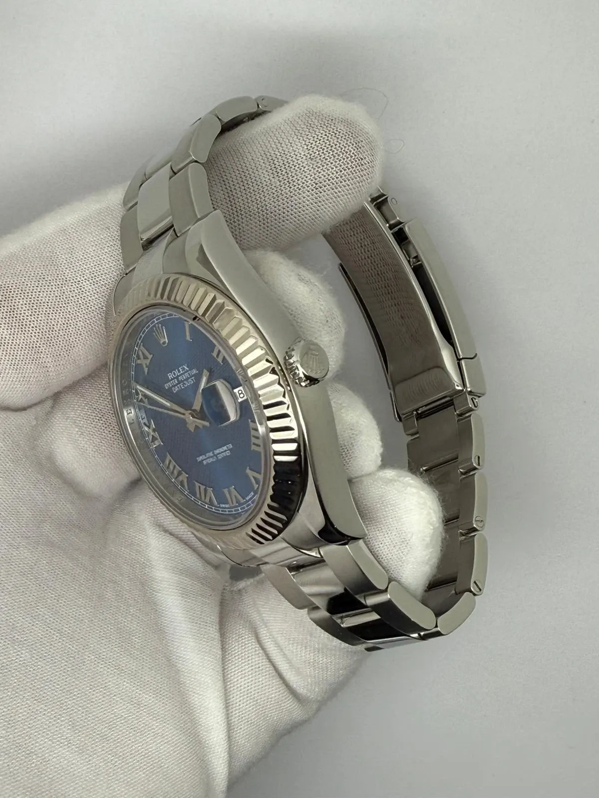 Powered by the reliable Rolex Calibre 3136 automatic movement, this model offers chronometer-certified precision and a smooth date function at 3 o’clock. The sapphire crystal and Cyclops lens ensure superb clarity and resilience.