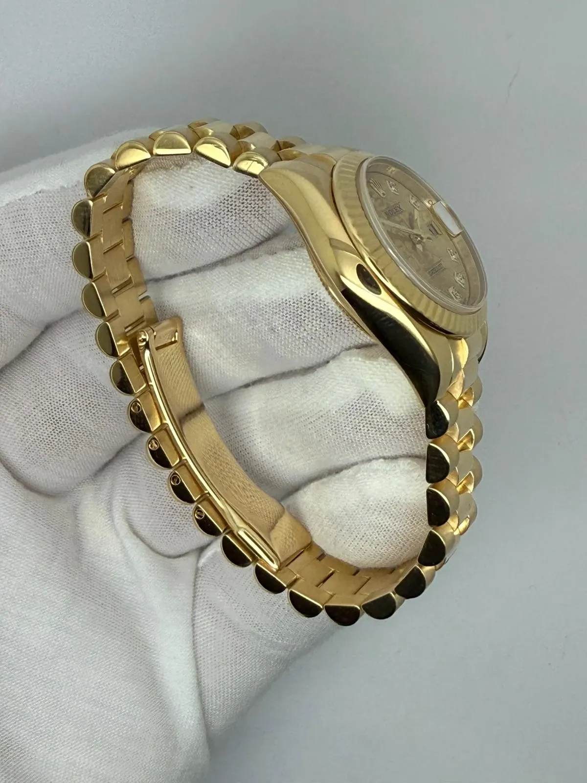 The standout feature of this model is its stunning Jubilee diamond-set dial, radiating luxury and refinement in every detail. Powered by the precise Rolex Calibre 2235 automatic movement, this timepiece offers outstanding accuracy and reliability, while the fluted bezel and Cyclops date magnifier complete the unmistakable Datejust aesthetic.