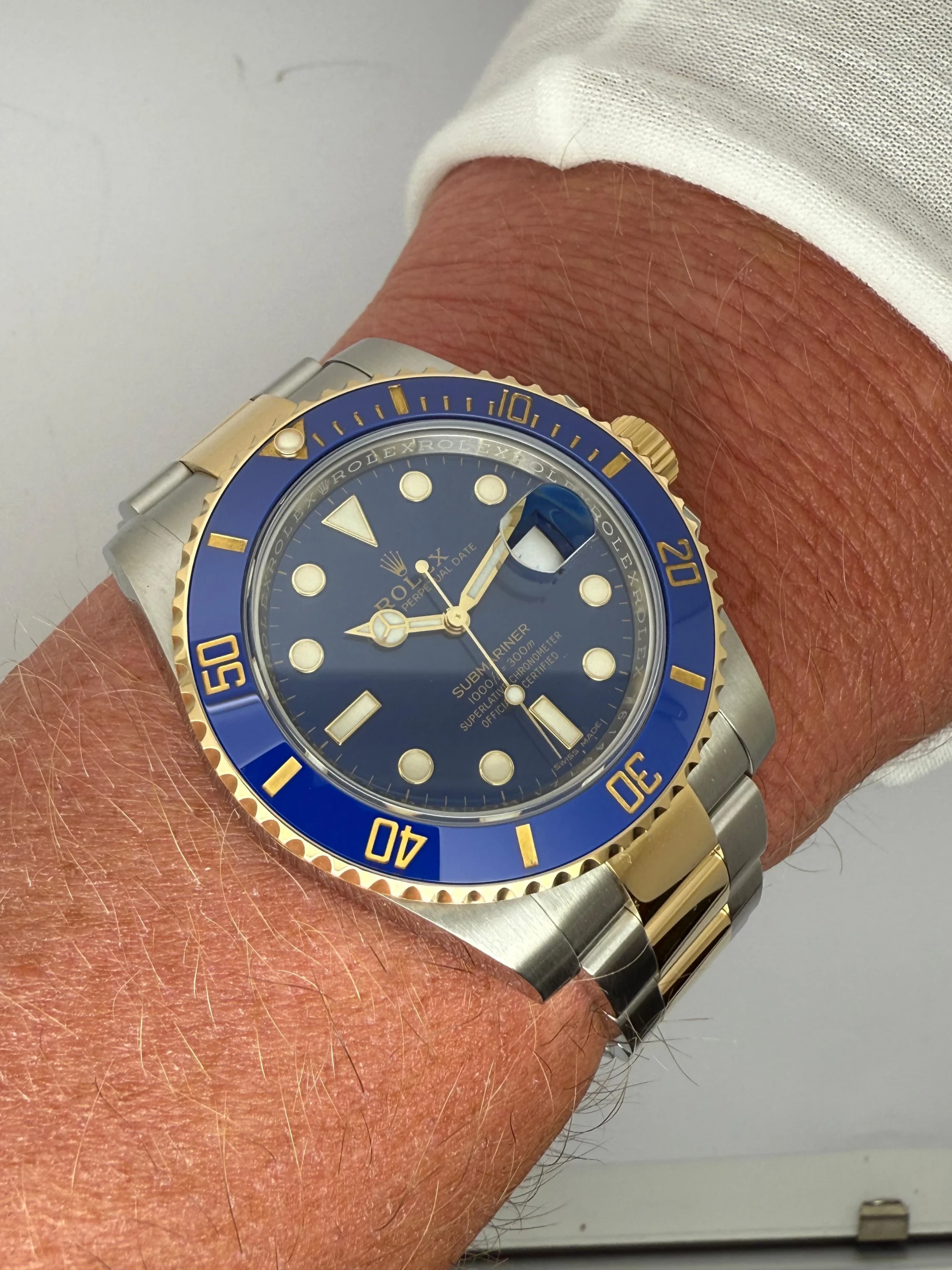 This 2020 Rolex Submariner Date, reference 116613LB, is the highly desirable “Bluesy” model, renowned for its striking blue dial and matching blue ceramic bezel. Crafted in stainless steel with 18ct yellow gold, the 40mm case and two-tone Oyster bracelet create a perfect balance of sportiness and luxury. Powered by Rolex’s automatic movement, the Submariner Date is celebrated for its durability, precision, and legendary dive watch heritage.