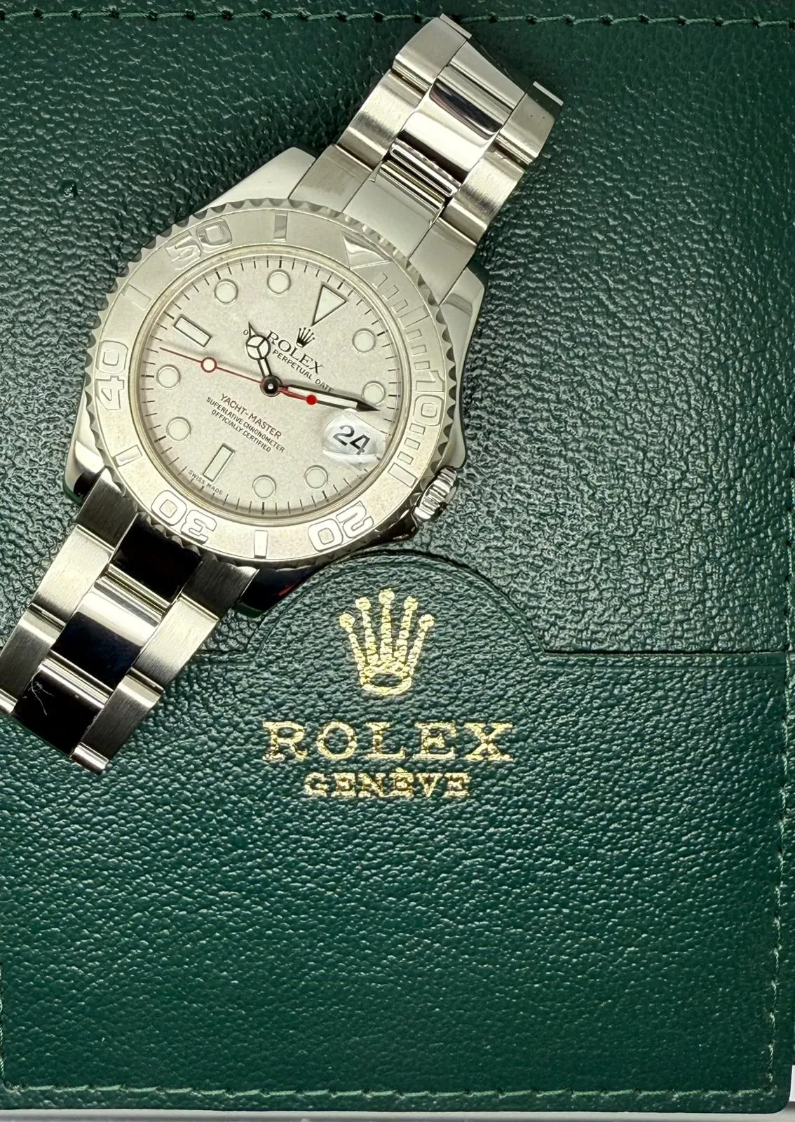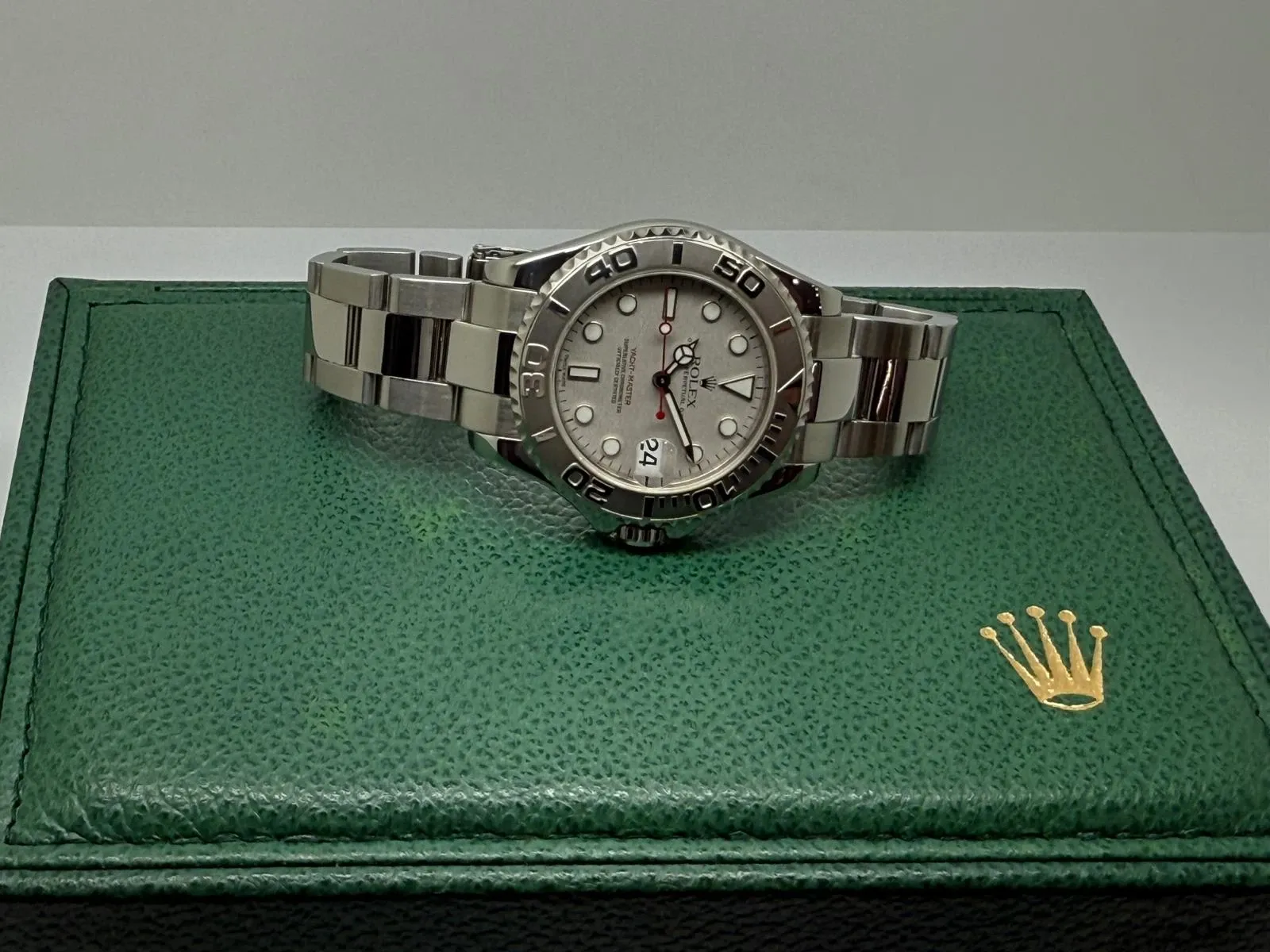 This refined Rolex Yacht-Master, reference 168622, perfectly captures the balance between luxury and performance that defines Rolex. Crafted from stainless steel with a platinum bidirectional bezel and matching platinum dial, this 35mm model is both elegant and versatile ideal for everyday wear or special occasions.