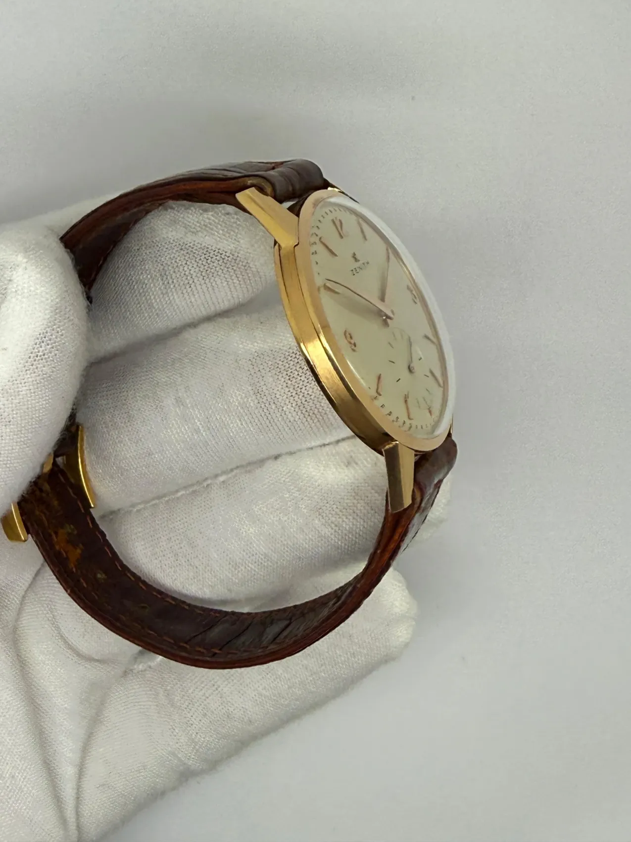 Presented in immaculate condition, this Zenith captures the understated beauty and craftsmanship for which the brand is admired. Its timeless design and precious metal construction make it not only a superb watch to wear but also a desirable collector’s piece. A true example of classic elegance, this vintage Zenith remains a standout choice for enthusiasts of fine Swiss horology.
